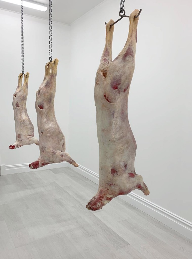 But apart from rare roast beef and wine from bottles approaching the double figure mark -(retail), how much did you miss? Opening speeches can be a bit tedious, with all the thanking that needs to be done and the acknowledging of sponsors taking up much of the oxygen. Rather than hearing that, most people would be wanting to ask the artist questions like “How did you fashion the sheep arses for the carcasses? Freehand modelling, or were they cast whole? Do you have to touch them up with the dremel? Hot knife?”